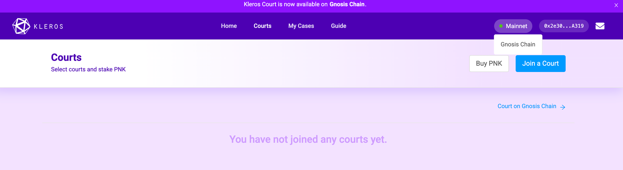- Visit court.kleros.io and connect your wallet