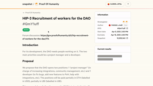 Modifications in the workings of Proof of Humanity and UBI need to be done through the submission and voting of Humanity Improvement Proposals (HIP).