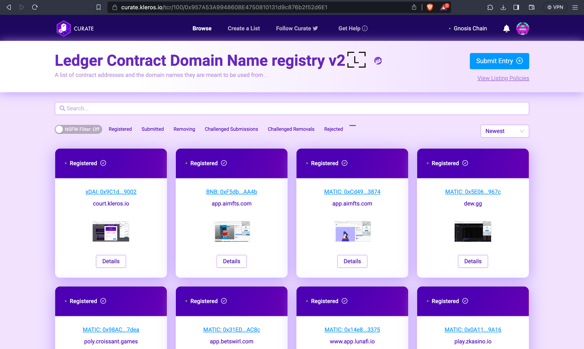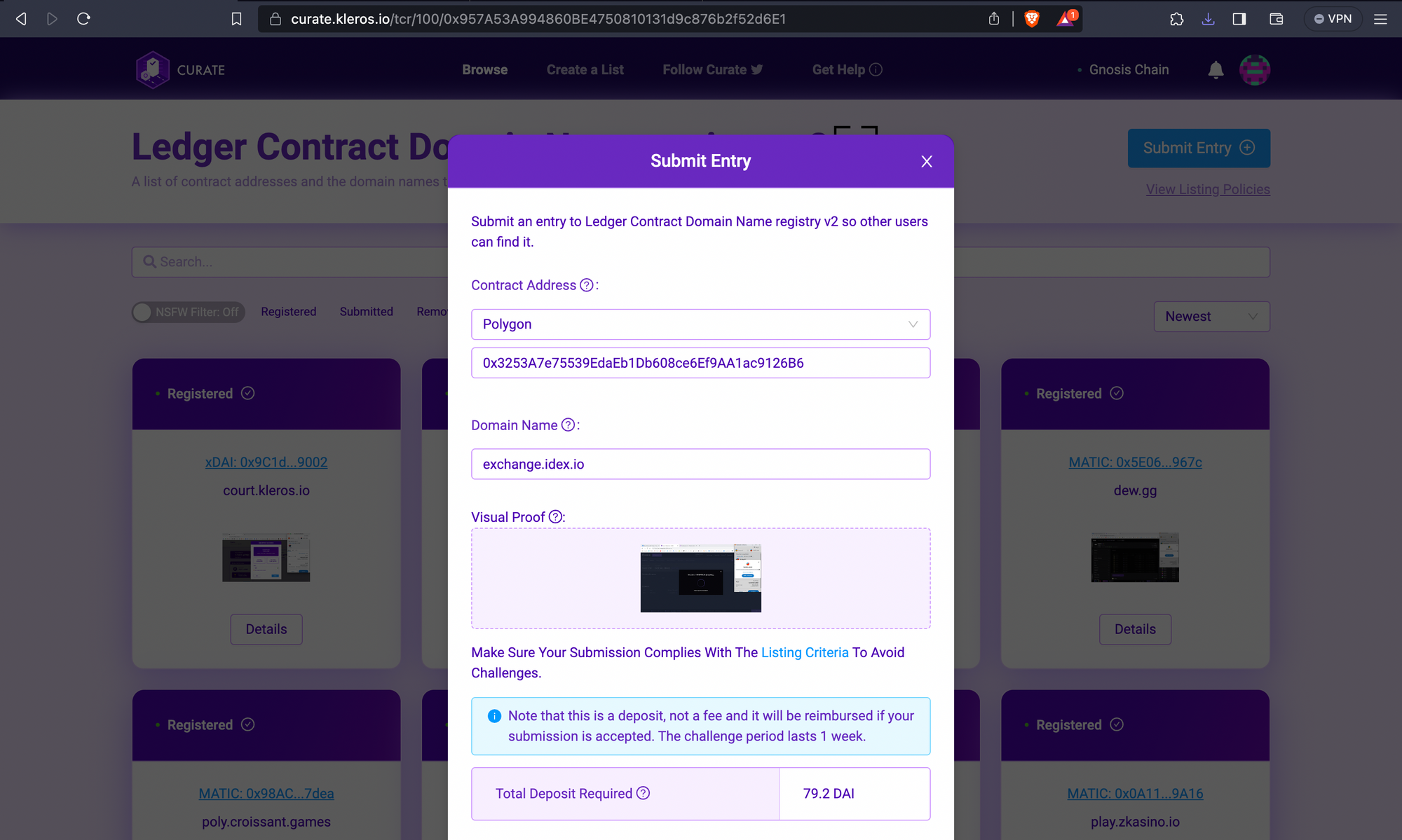 Wait through the optimistic challenge period to get your deposit refunded and see your entry on the registry!