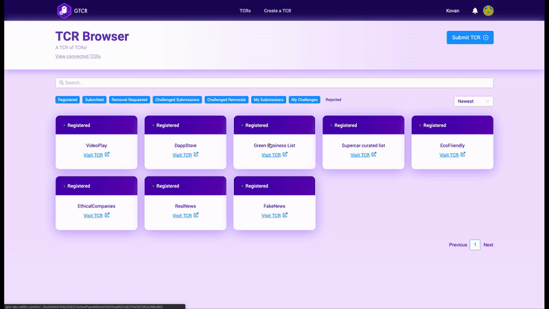 - We will release the Generalized Token Curated Registry (GTCR), a Dapp that enables users create their own token curated registries. This will increase the use of Kleros with the goal of curating information.