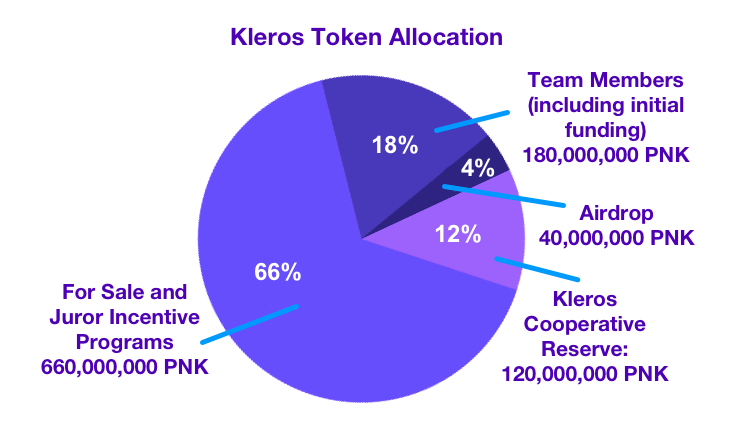 Coopérative Kleros has an allocation of 120,000,000 PNK which are mostly used for the payment of bounties, marketing activities and to provide liquidity in exchanges.