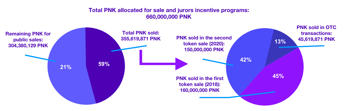 - The Cooperative held a successful token sale from January 11th to 30th, 2020 which raised 7,790 ETH for 150,000,000 PNK. Thanks to high demand, the sale was sold out 12 days before the expected end date.