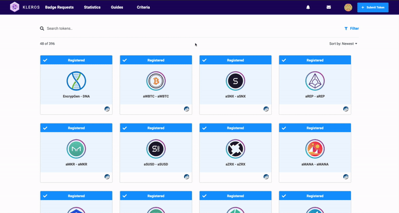 Over 350 tokens are registered on the Kleros TCR.