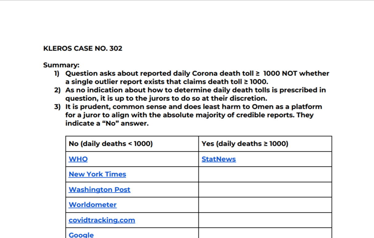 In July, Kleros had its largest trial ever where 511 jurors were drawn in the General Court to adjudicate a case coming from the Omen prediction market: Will there be a day with at least 1000 reported Corona death in the US in the first 14 days of July?