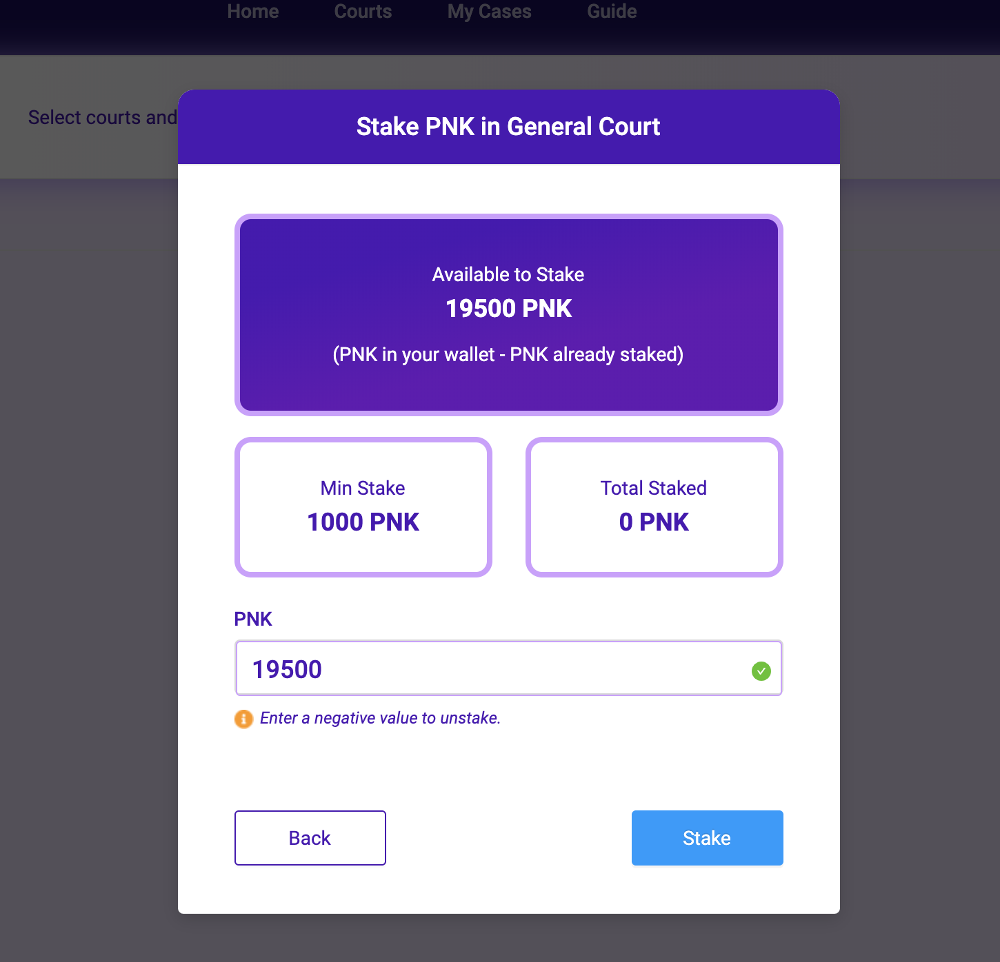 The staking page has been simplified giving the user a clearer and more efficient process in staking their PNK.