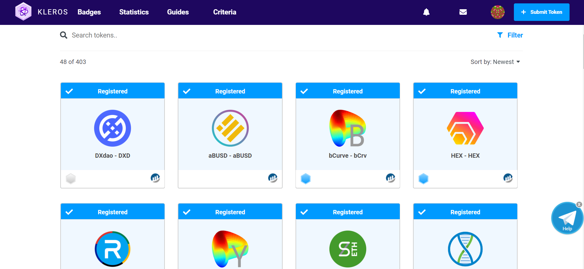 In this early experience of community curation, any user could submit a token he wanted to be accepted into a whitelist. Other users could challenge submissions they thought didn't comply with a number guidelines regarding logo quality and smart contract address.