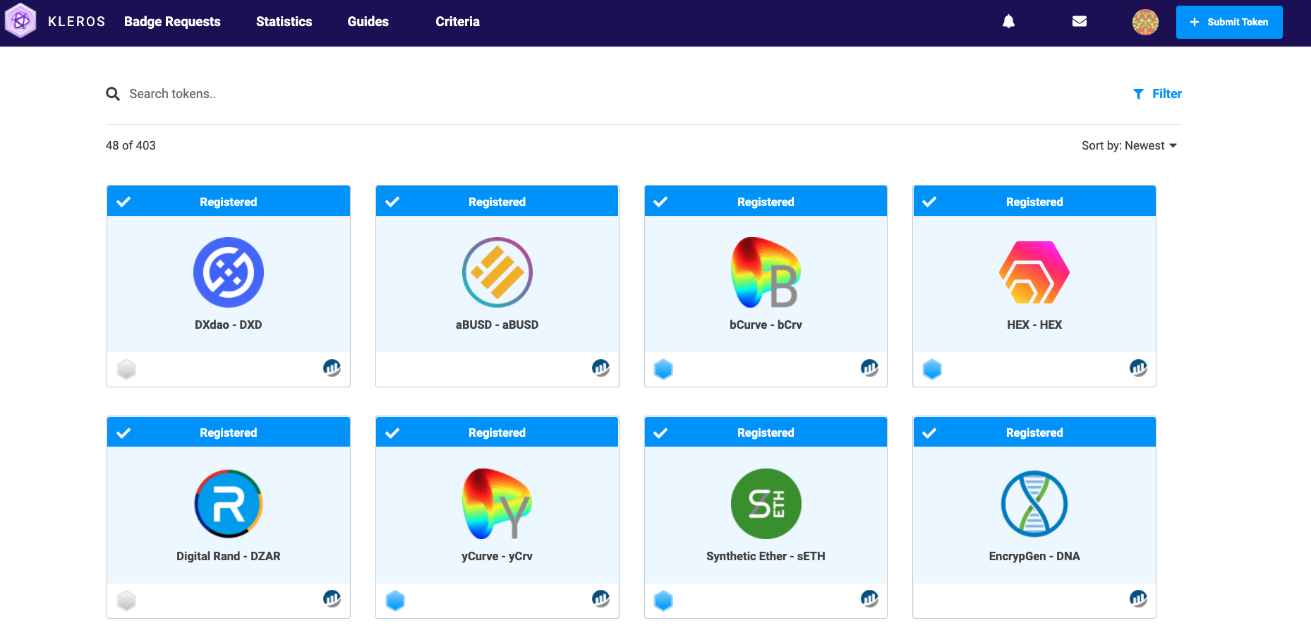 The image below is the end result of the process. A curated registry of tokens that fit the above criteria as decided by a decentralized community.