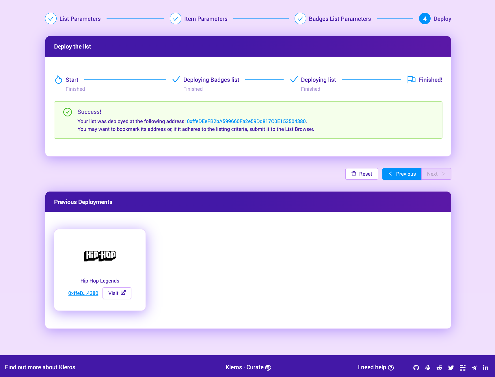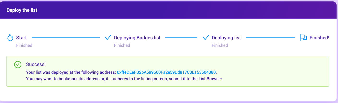 Once you accept the Metamask transactions and pay the fees, your list will be deployed.