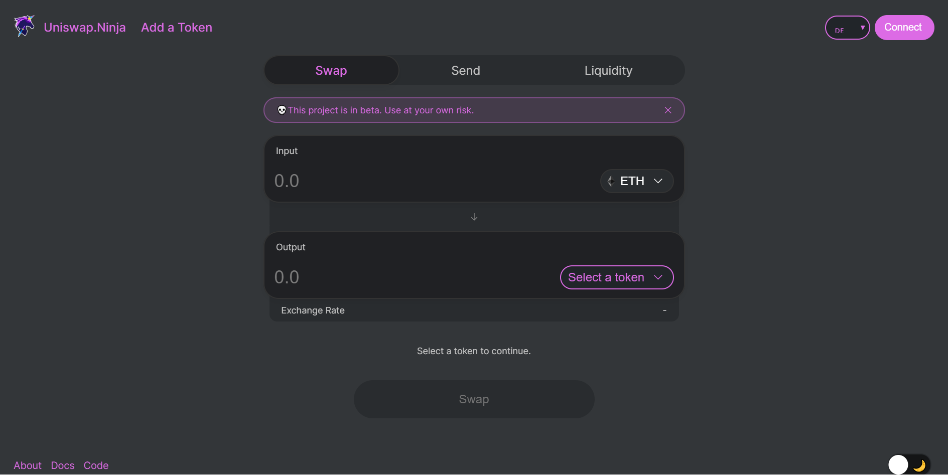 Thinking about how to apply our ever growing list of tokens, we decided to create a Uniswap front-end for our T2CR, which we aptly named Uniswap.Ninja.