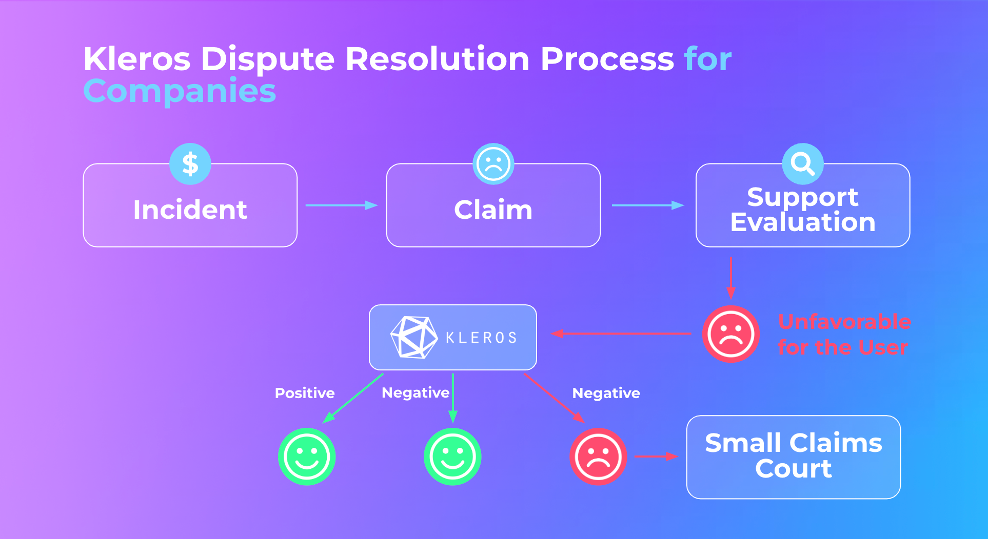 5. The company commits to respecting Kleros' decision as binding. If the user remains dissatisfied with the arbitration outcome, they retain the right to pursue the claim in Small Claims Court.
