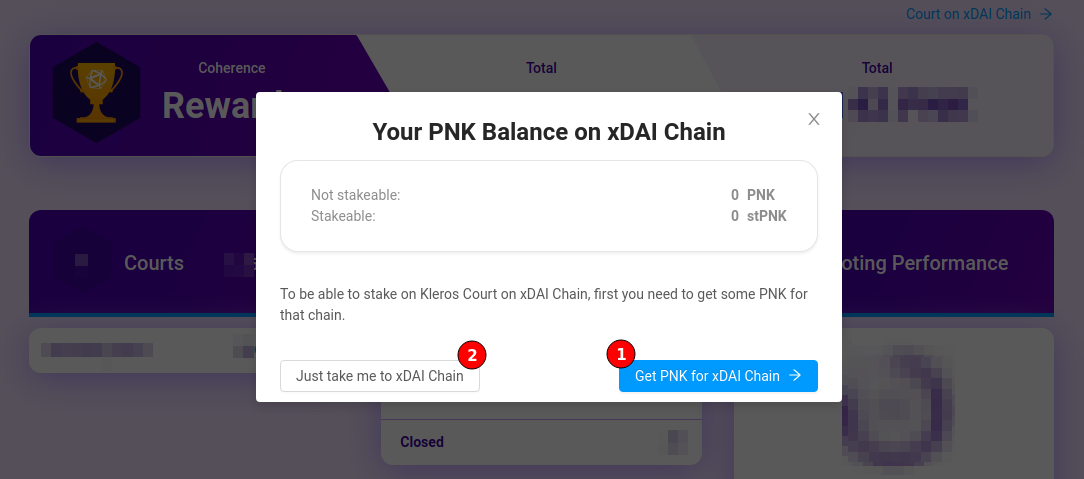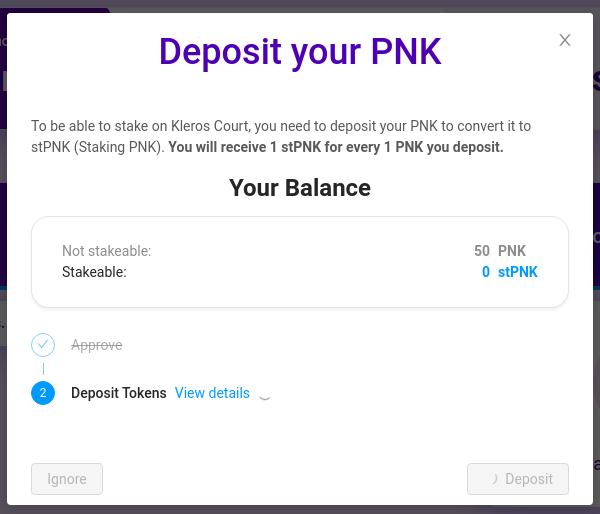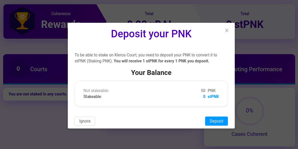 Only stPNK can be staked on courts, so we recommend depositing your PNK on xDAI as soon as you get them.