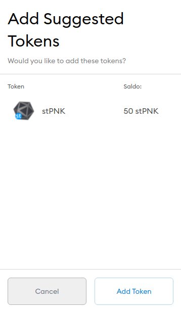 You will also be prompted to add stPNK to your MetaMask Token List: