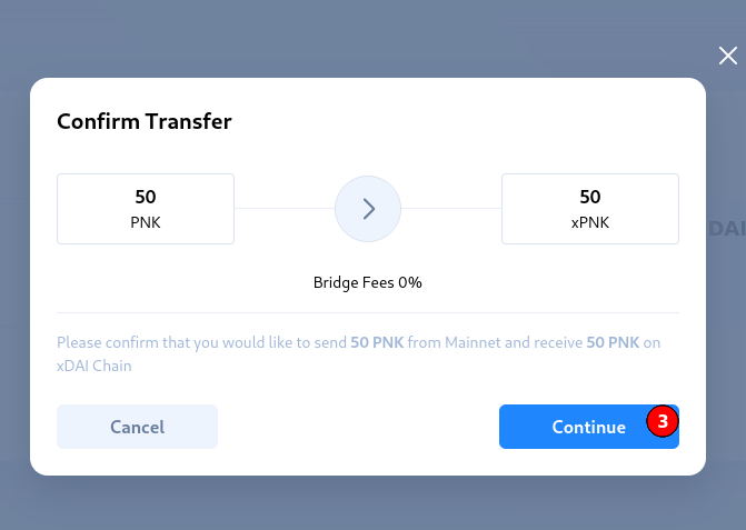 If this is the first time you are doing it, it means you probably don't have PNK on xDAI Chain, so you will be presented the following options: