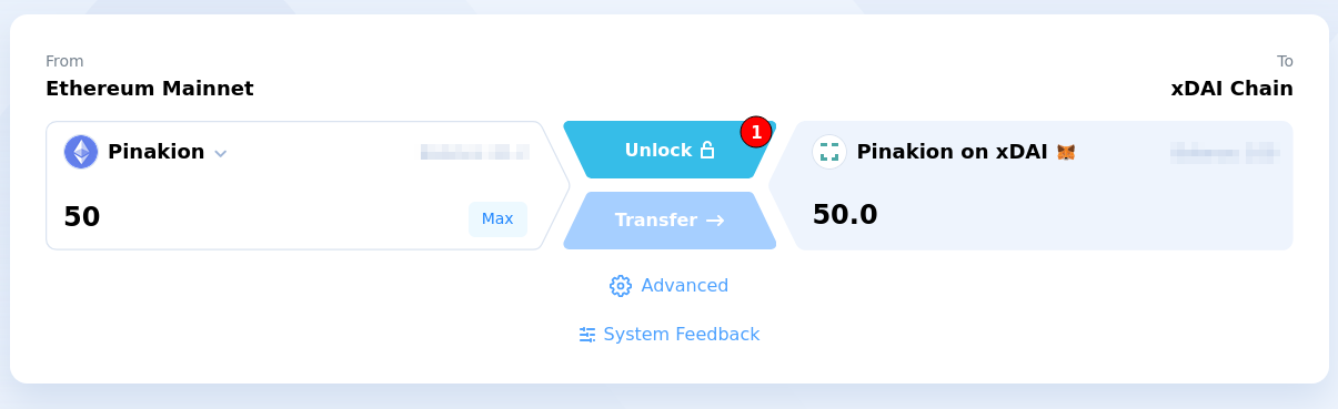 Notice that only tokens which aren't currently staked can be bridged. If you try to transfer staked tokens, the transaction will fail. If you don't have unstaked tokens, you can unstake from some Mainnet courts or, even better, get some extra PNK on Uniswap.