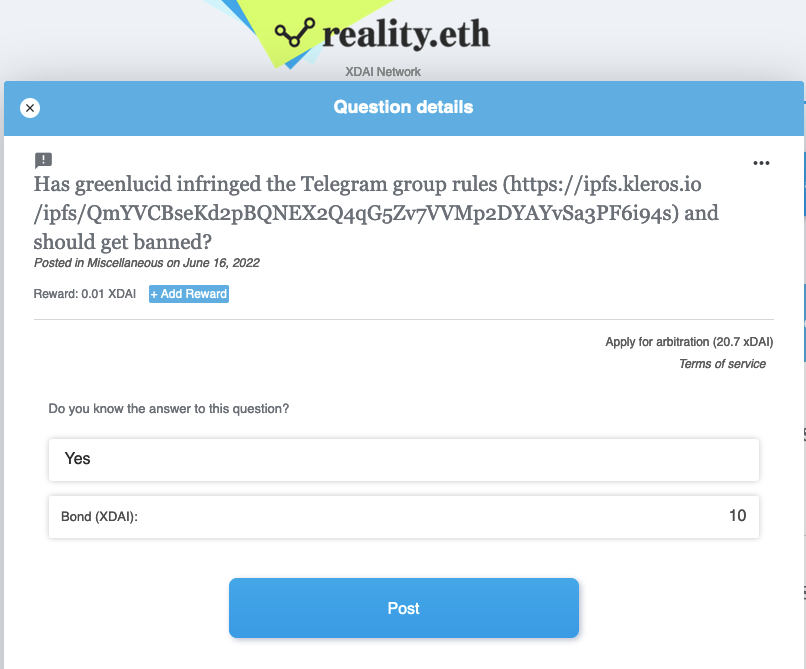 We are greatly interested in new developments such as Lens Protocol and envision an important role for Kleros in Web3 social platforms. However, as this transition occurs, most communities are still interacting on Web2 applications such as Telegram and Discord.