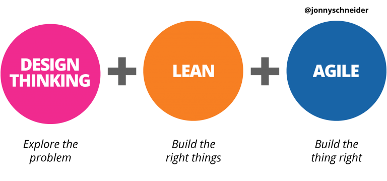 “Design Thinking is how we explore and solve problems; Lean is our framework for testing our beliefs and learning our way to the right outcomes; and Agile is how we adapt to changing conditions with software.” - Jonny Schneider