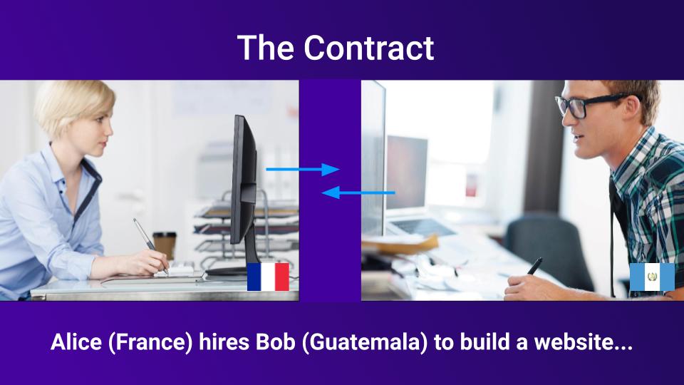 Let's take an example: Alice hires Bob to conduct a job online. But they only met on an online forum and don't really know each other's real identity. How can they trust each other?