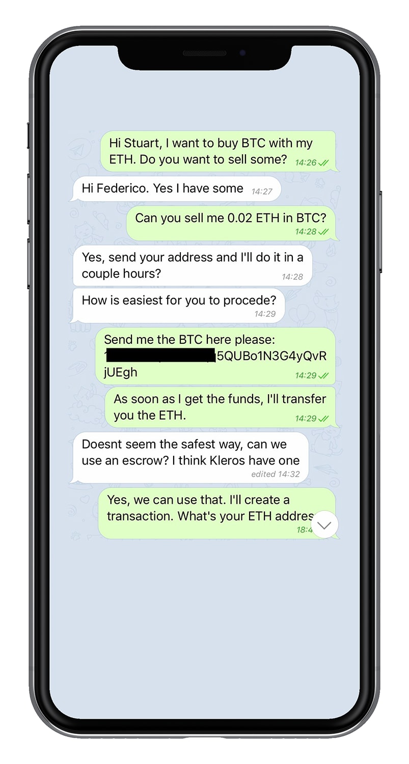 Federico and Stuart have agreed to make an over-the-counter exchange BTC for ETH. This is what happened...