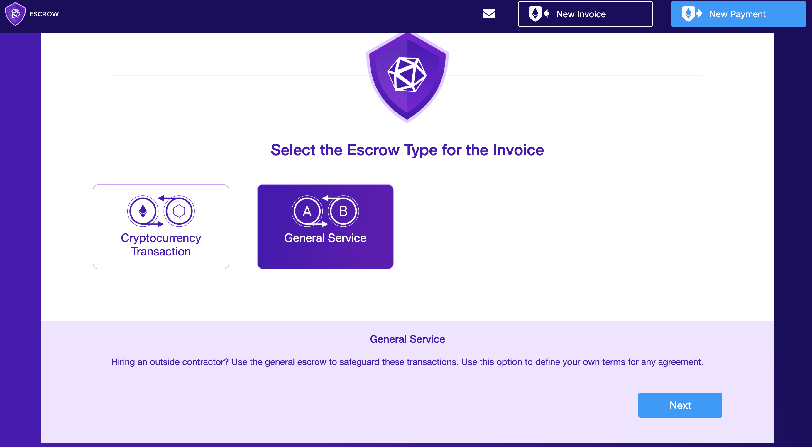 Once you've selected the option you want (in this example a General Escrow), proceed to the next screen.