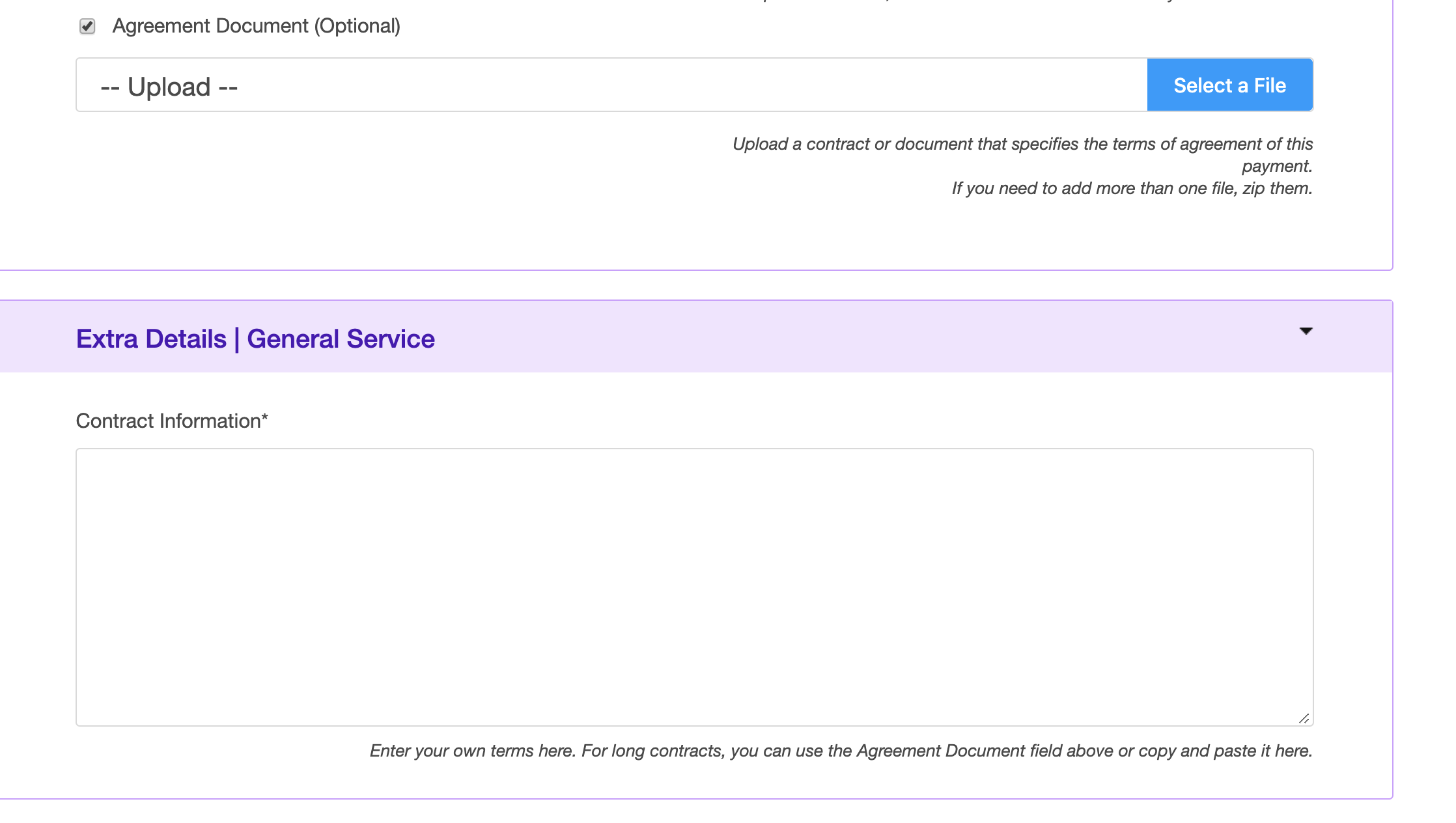You can upload specific agreement documents (a list of tasks to be completed, for example) as an optional extra.