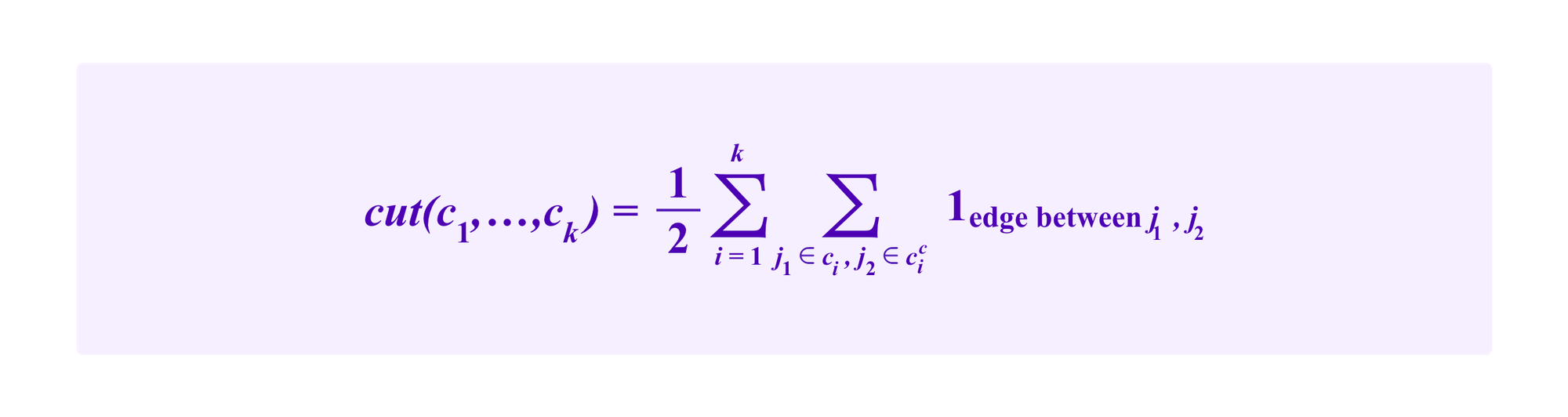 Namely, minimizing cut(c1,...,ck) minimizes the total number of edges that pass from a cluster to its complement, that is to say to another cluster.