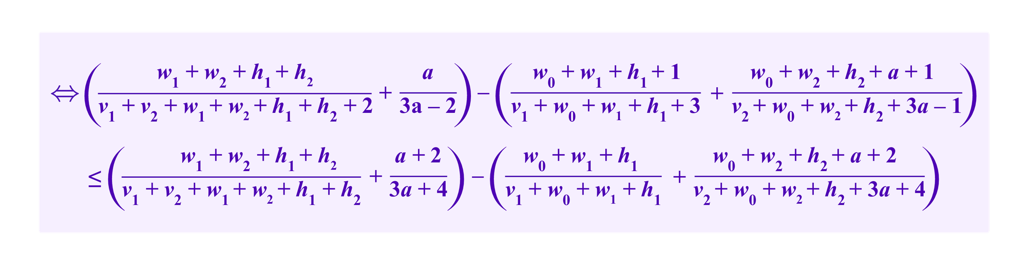 (v1, v2, w0, w1, w2, and a may or may not also be large enough that any constants in the denominators with them are more or less negligible. One would generally expect v1 and v2 to be somewhat greater than h1 and h2 if many users in ci and cj respectively share the same SBTs.)