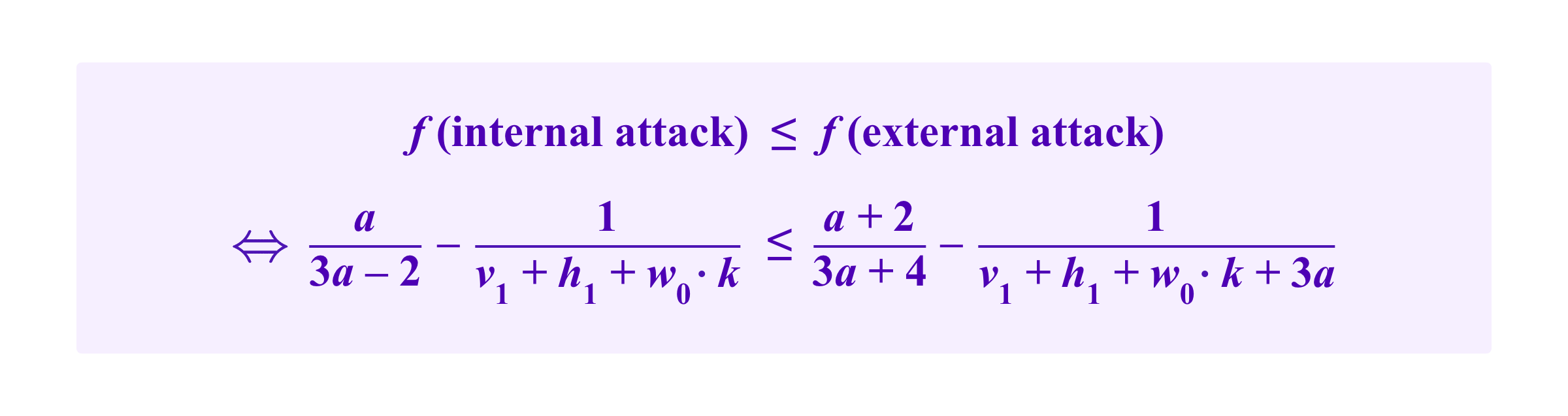 Then, to get a sense of in what conditions the attacker might pursue either the internal or the external attack, we can define