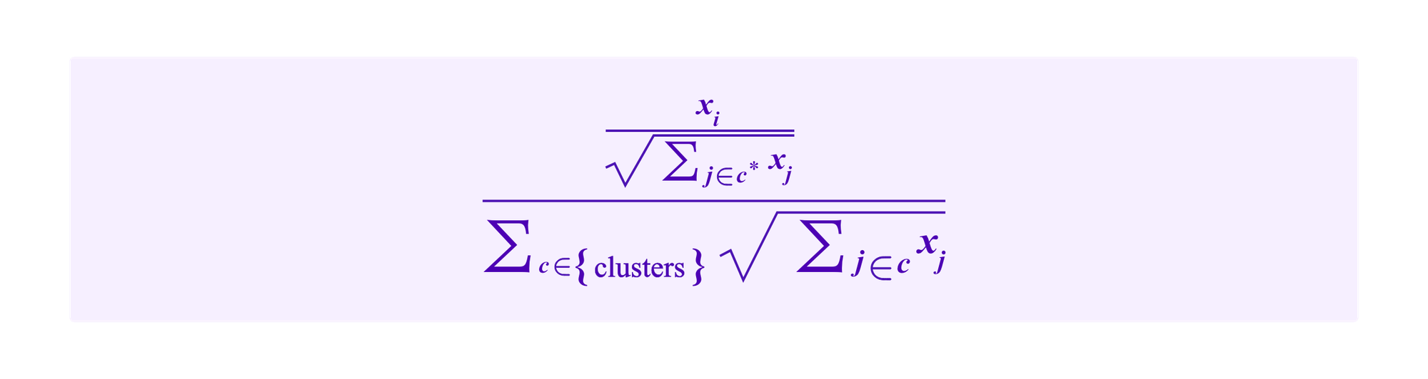 where k is the total number of clusters produced by the clustering algorithm.