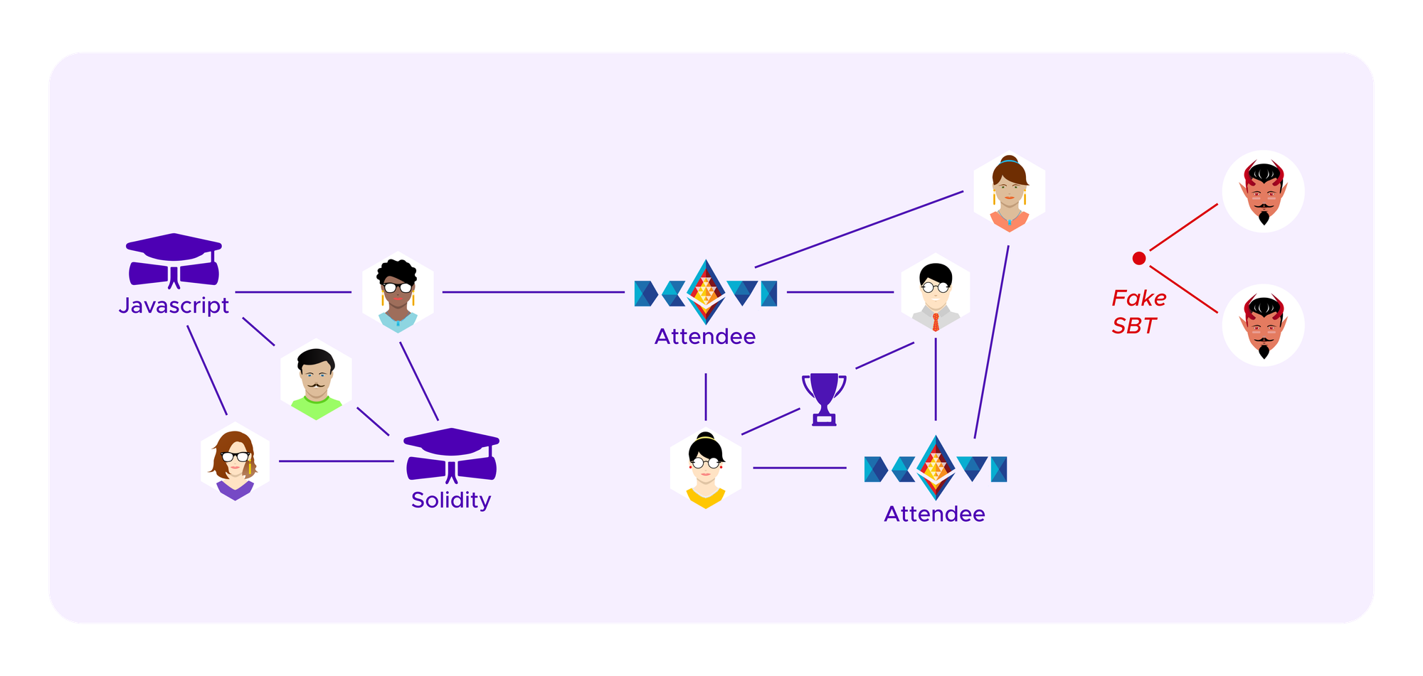 - Furthermore, we assume the attacker is capable of attributing fake SBTs to her own profiles as well as potentially attributing fake SBTs to the profiles of honest users.