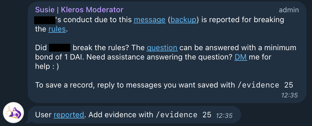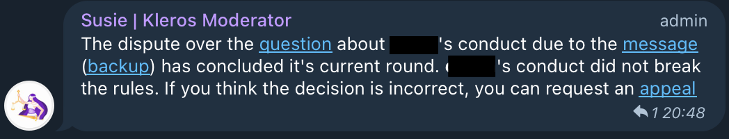 Kleros has been thinking about this topic, not just from a technological perspective, but also about the fine line between community protection and balancing free speech, transparency and fairness. After two years of our endeavour in this field, we are proud to announce that we've created the first implementation of Kleros Moderate, our solution to content moderation - Susie the Kleros Moderator, specifically tailored to Telegram.