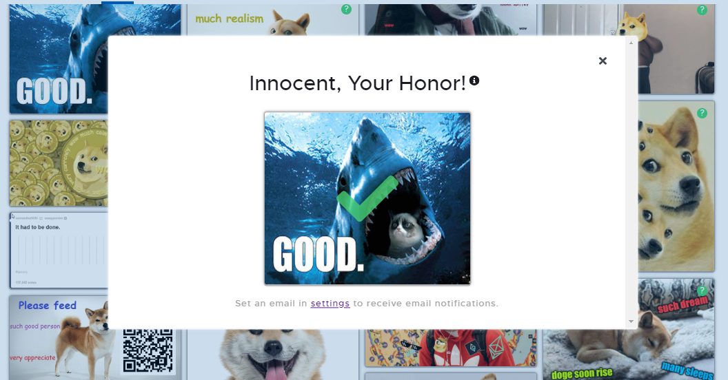 Specifically, in our curated list model, as used in the Doges on Trial pilot, we allow “challengers” to flag submissions that they believe do not satisfy the conditions of the list, subsequently causing this submission to be considered by a group of Kleros jurors as a dispute.