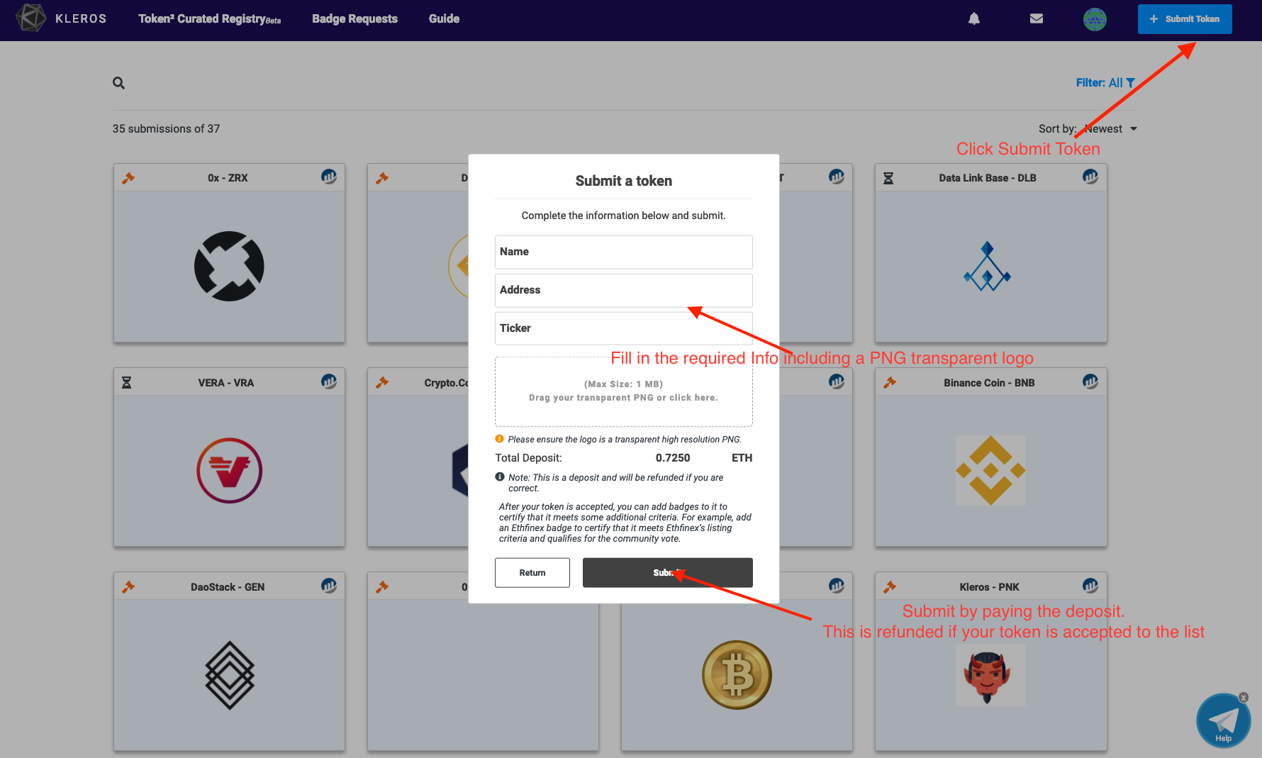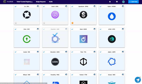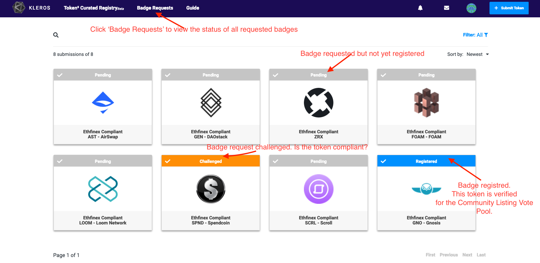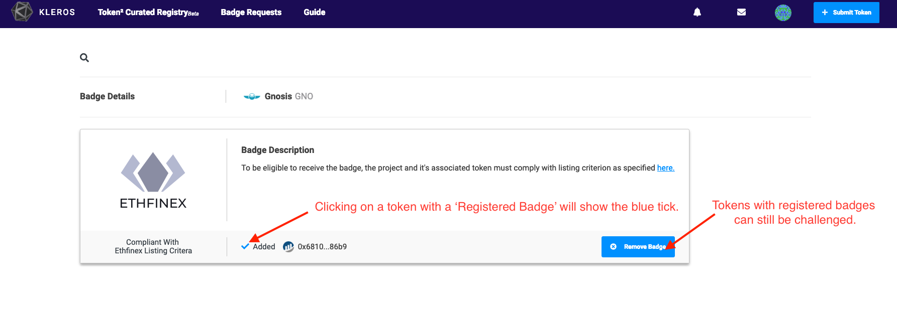 As you can see above, the token has been accepted to the list (stage one) but doesn't yet have a valid badge. To add a badge, follow the steps in the animated Gif above.