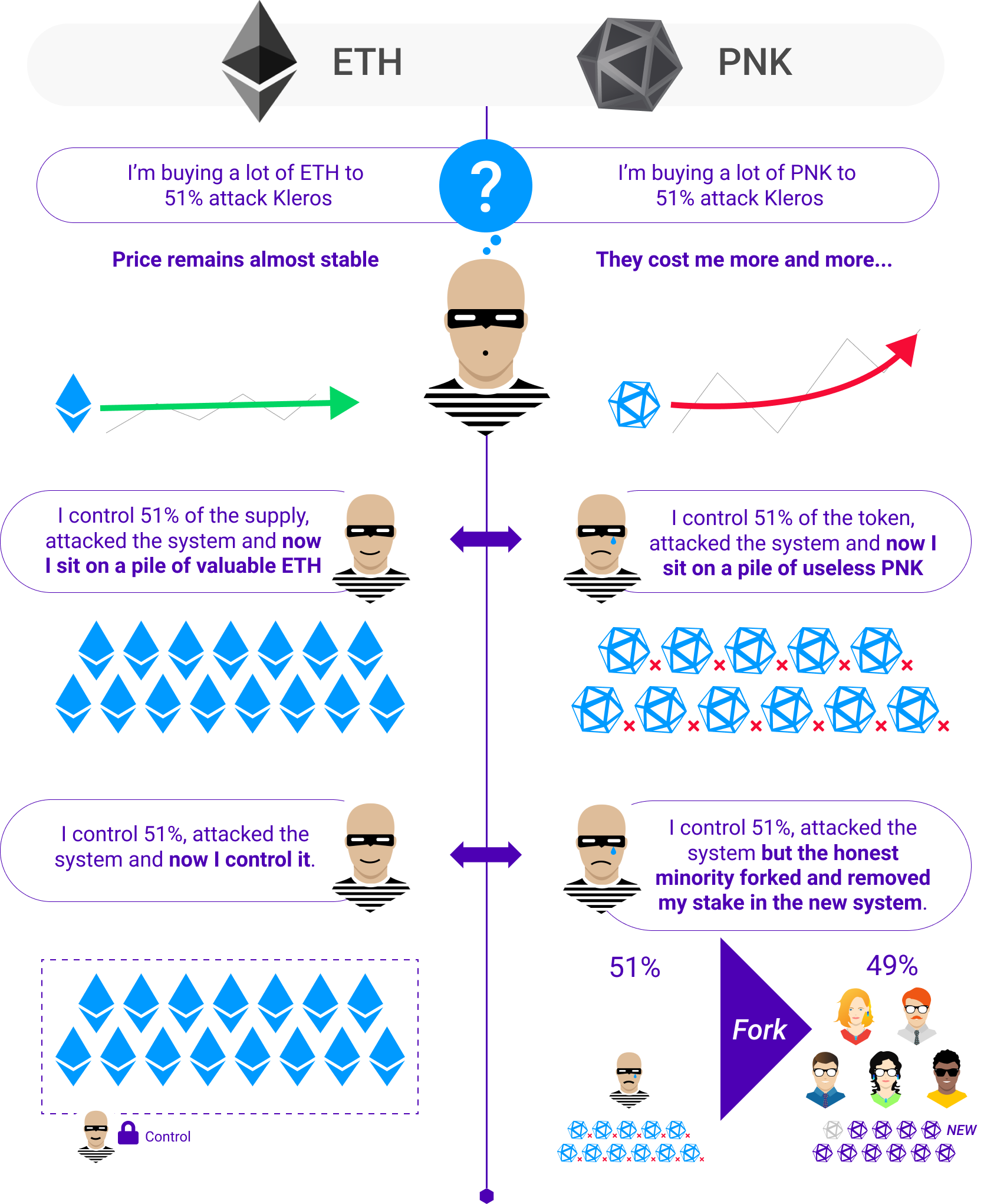 - As a consequence, the juror can win rewards in ETH and PNK, or lose staked PNK, depending if he/she voted coherently with the majority or not.