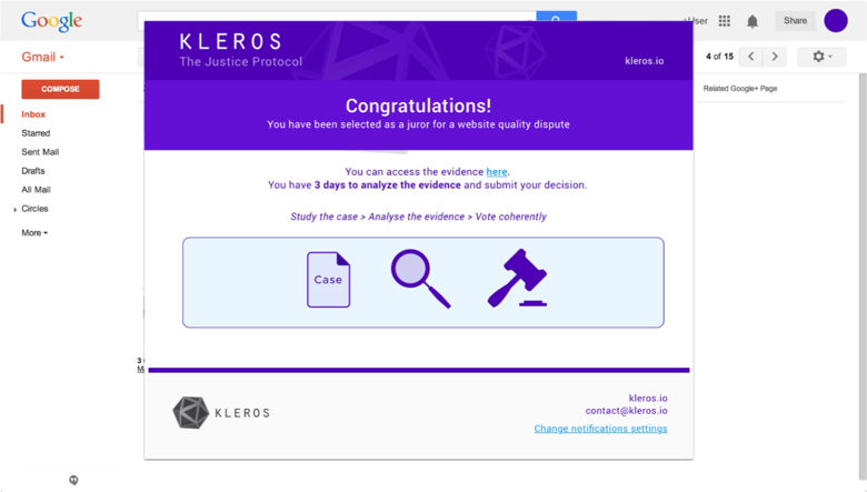 - Upon being randomly selected as a juror for a case: they’ll come back to Kleros and enter the same chosen court as before.
