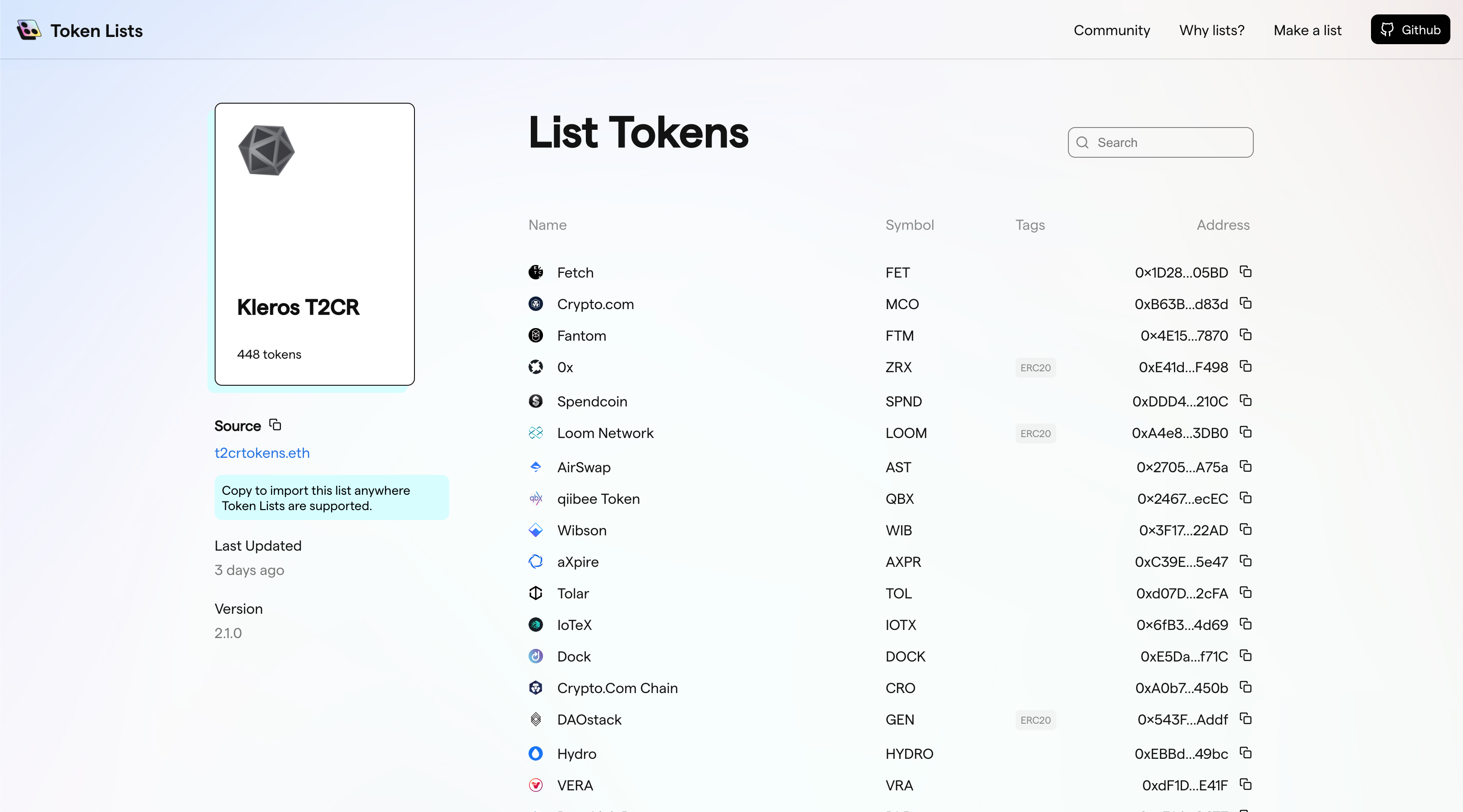 As the Kleros Token Curated Registry nears 500 submissions, we are excited to announce its use on Uniswap's lists. Kleros has a fully decentralized list curation mechanism allowing for the simple addition of tokens with ticker, logo, and respective contract address to be vetted by the overall community.