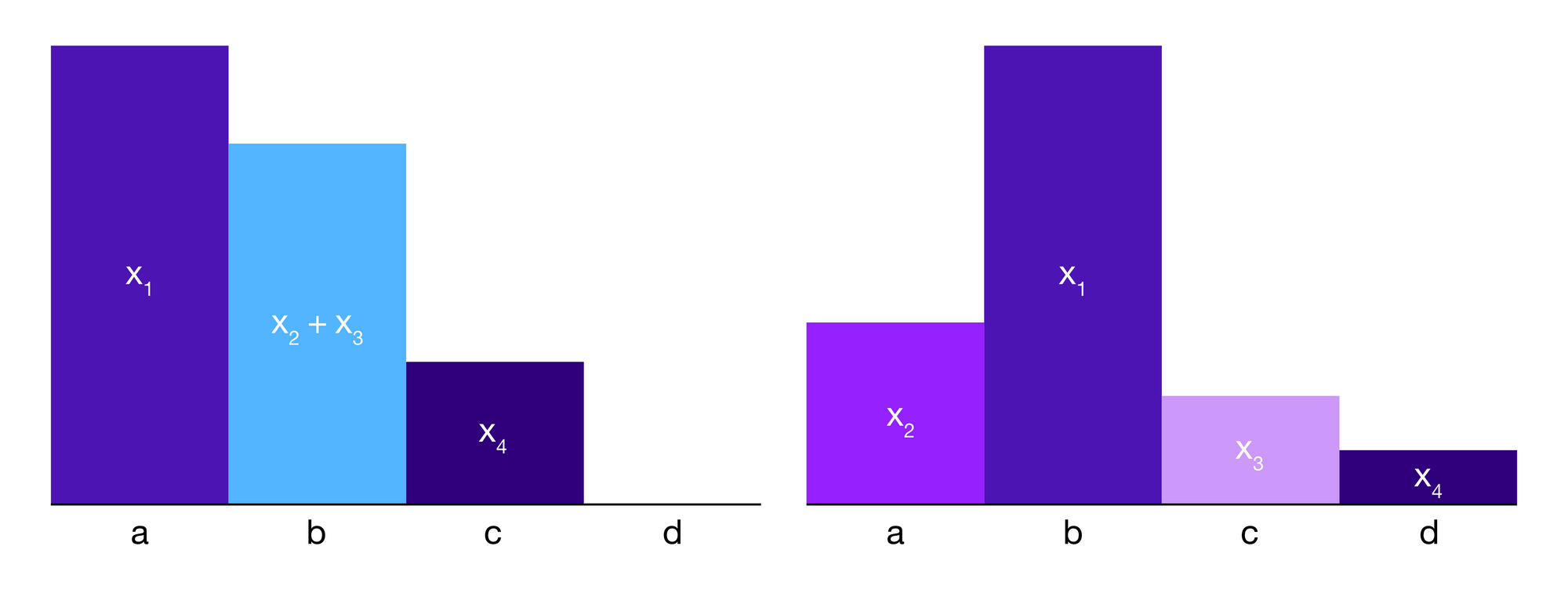 Take pa, pb, pc, and pd to be the probabilities that a juror i attributes to the chance that a, b, c, and d respectively win the vote, still with the example situation of four numeric options such that a > b > c > d. Suppose that a juror believes that option a is correct, with the heuristic that this implies that she sees pa>pb>pc>pd.