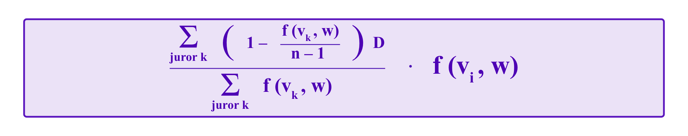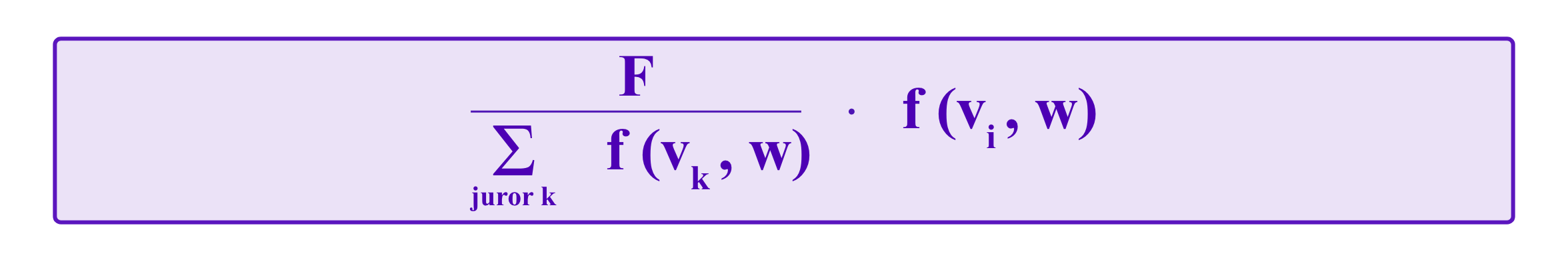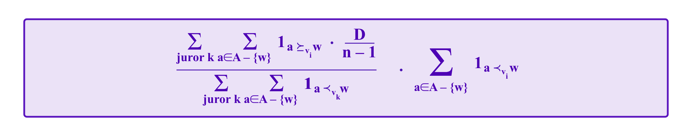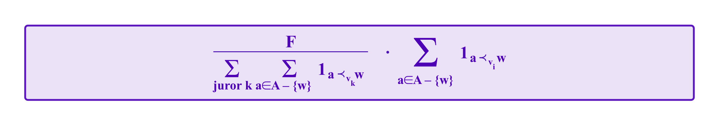 Then, the arbitration fees of F and the lost amounts from jurors' deposits are distributed to a given juror i according to how many options she correctly ranked below the winning option w compared to how many options the jurors collectively ranked below w. Namely, the juror i receives