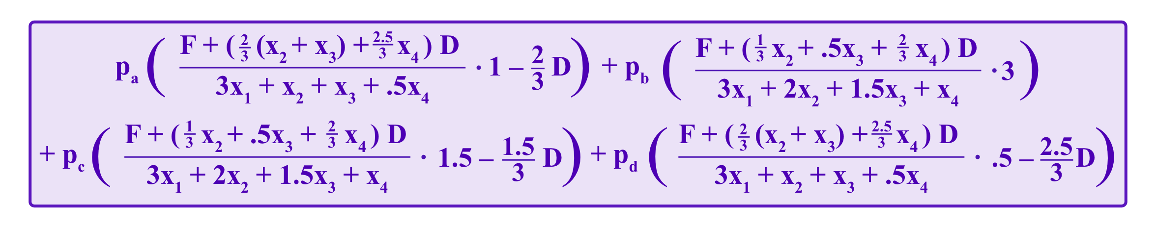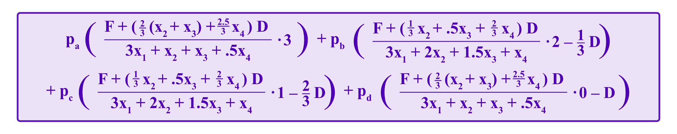 We can consider what these formulas give when the options are numeric. Say we have a dispute with possible outcomes a, b, c, and d with a > b > c > d as numbers such as in the dispute between Alice and Bob above.