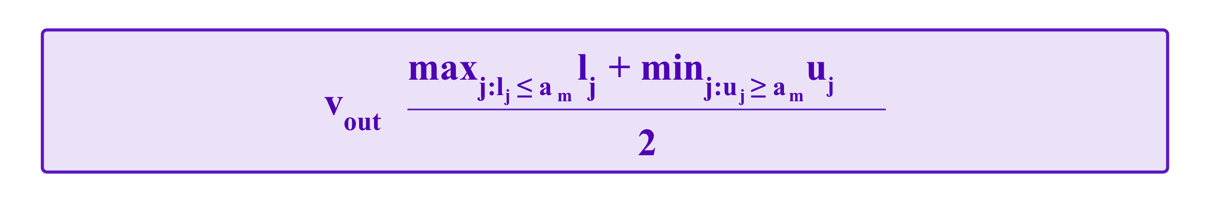 The median value of the ai's: am would be the decisive vote on any of these disputes, so we can eliminate lower bounds that are higher than am and upper bound that are lower than am. Then, taking the output value as halfway between the highest remaining lower bound and the lowest remaining upper bound, we have: