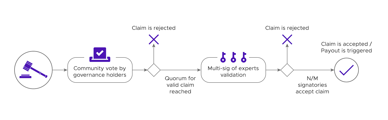 Most DeFi insurance projects out there are employing a multi-step voting process to manage their claims and these votes use the native governance token of the project as a ballot. The claims will often go through a first community-wide approval or rejection before being reviewed by a final committee that acts as the final decision-maker.
